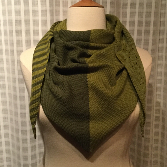 Dette sjalet er en blanding av Hillesvåg garn - der en bunt er farga av Splitterpinne. Herlig!